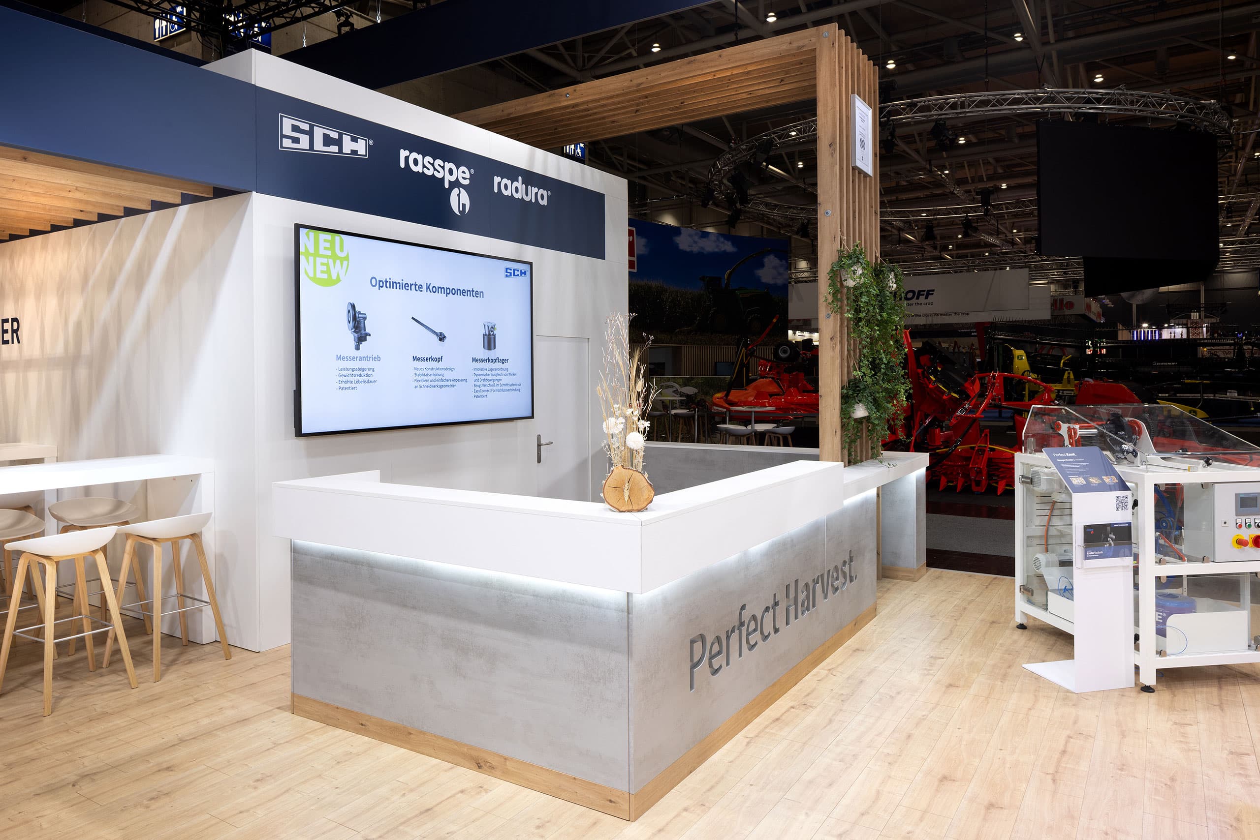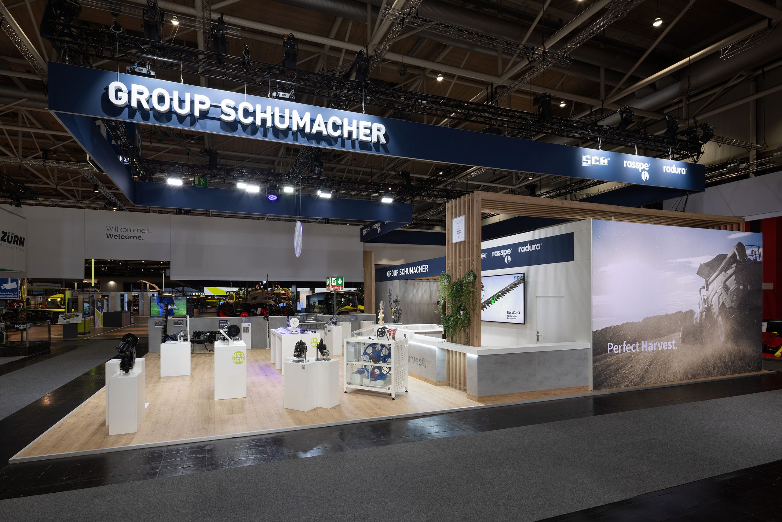 Für die Group Schuhmacher, einen der führenden Hersteller im Bereich Erntetechnik, realisierte Bestmann Messebau den Messeauftritt auf der Agritechnica in Hannover. Der Stand verbindet klare Linien, hochwertige Materialien und eine offene Architektur, die die Innovationskraft des Unternehmens optimal zur Geltung bringt.