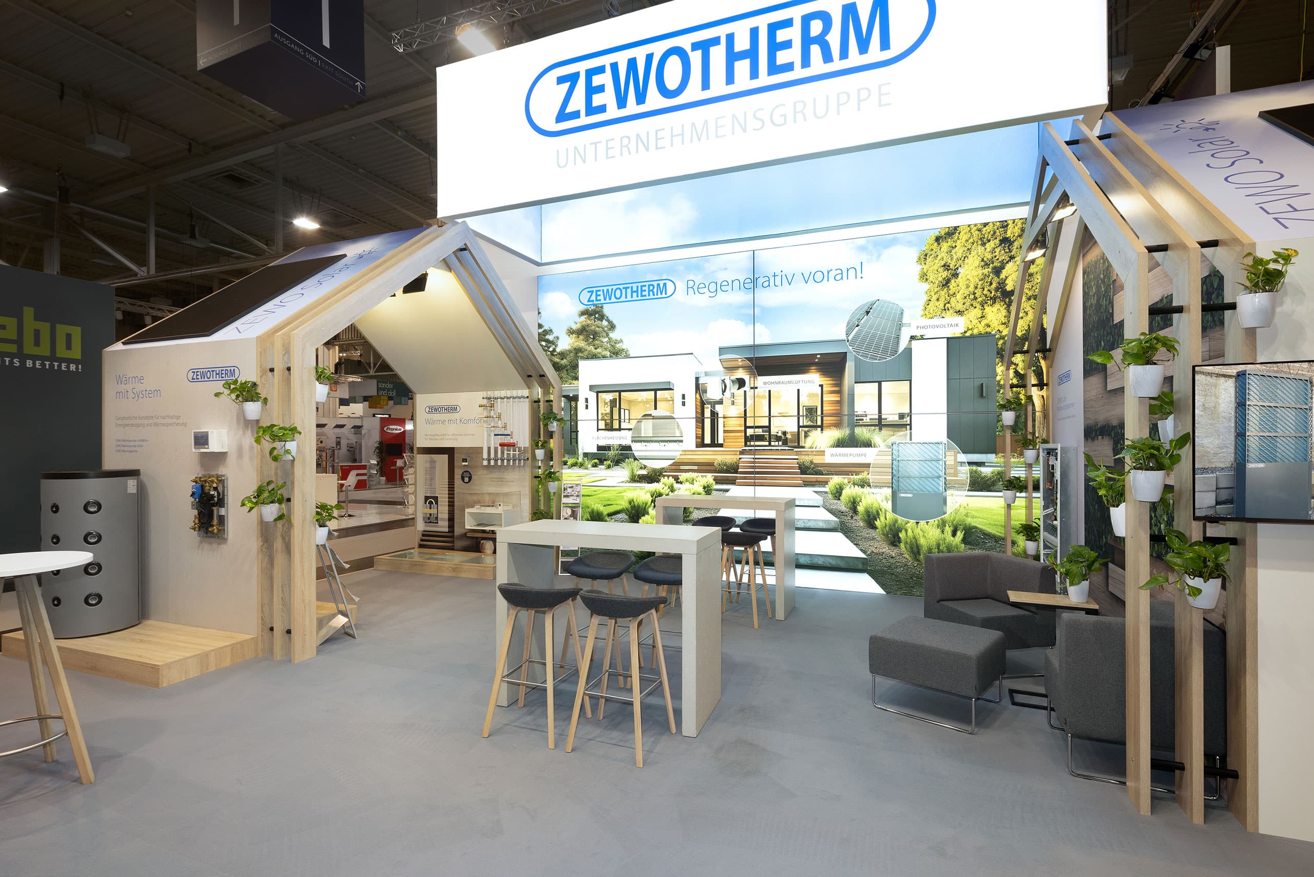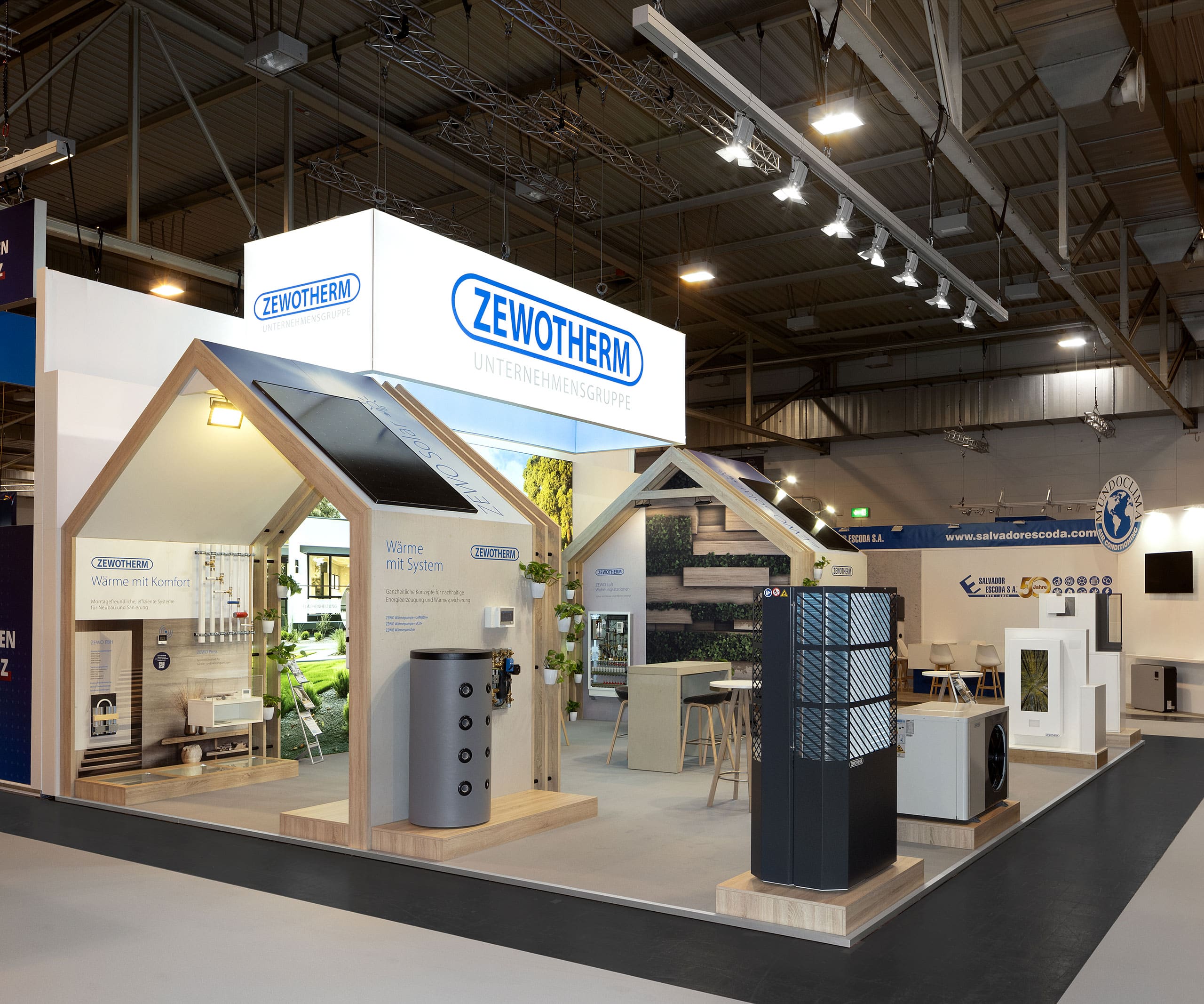 Der Stand setzt die Innovationskraft von Zewotherm klar in Szene: ein offenes, strukturiertes Design, das Produktneuheiten, Systemlösungen und digitale Technologien übersichtlich präsentiert und zugleich Raum für fachliche Gespräche schafft.